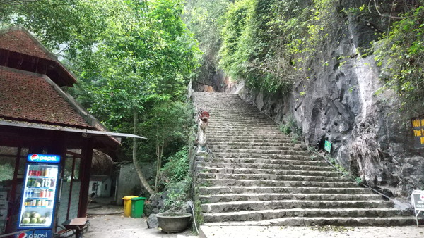 石段を登ると中寺があります。背後はそそり立つ崖になっていて、なかなか壮観な景観です。下寺でもそうだったんですが、地元のベトナムの方々が熱心にお祈りをしていたのが印象的で、信仰心の深さを実感しました。
