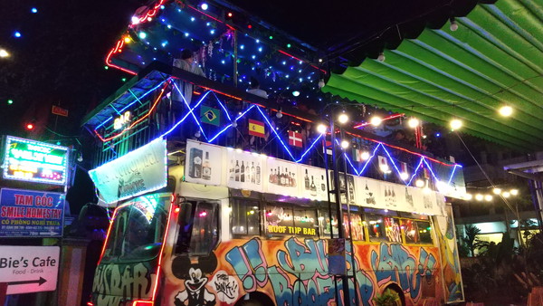 大型車両の屋根の上で営業しているカラオケバーがいくつかありました。