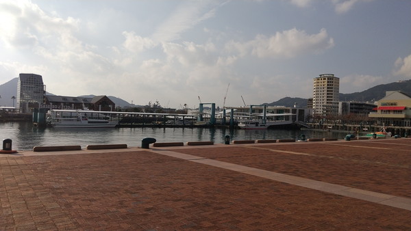 佐世保駅のみなと口から出ると、佐世保港がありました。この時間になると天気が良くなってきました。気温も大分高くなってきて、12月とは思えない暖かさです。
