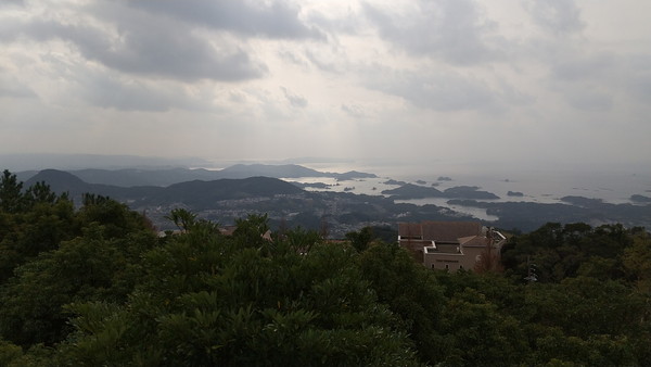 晴れていれば展望台から素晴らしい景観が見れたはずなのですが、あいにくの曇りでした。予報ではこの後晴れる予定になっていたので、しばらく様子を見ていたのですが駄目そうです。この後、九十九島の方にも行ってみようと思っていたのですが、この天気では景観もイマイチだと思ったので取りやめました。