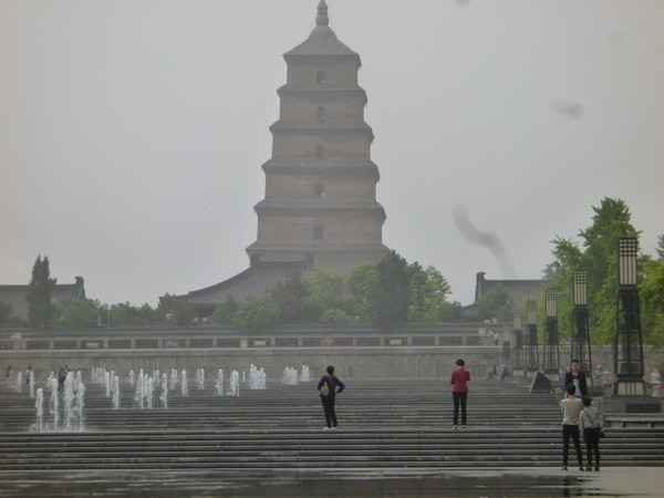 大雁塔の前には噴水があり、なかなか良い景観を形作っています。また、気のせいだと思ったのですが、大雁塔は少し傾いているようです。