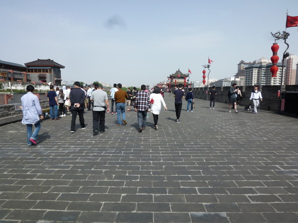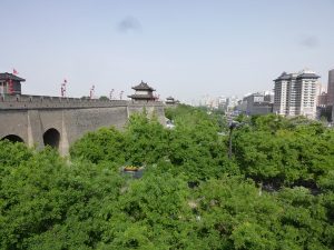 ホテルに戻りしばし休憩を取ります。朝早かったせいか、爆睡してしまいます。約1時間後、体力が回復したので、次の目的地である西安城壁(西安城墙)を見に行きます。西安城壁は、唐の長安城を基礎に明の洪武年間(1370年~1378年)にレンガを積み重ねて築かれたものであり、現存する古代城壁としては世界最大です。