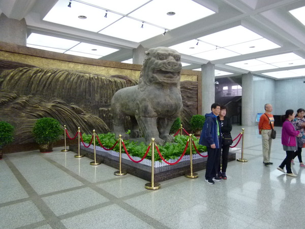 ホールに入ると巨大な獅子像が出迎えてくれます。これは、則天武后の母、楊氏の陵墓から出土したものです。中国の墓というと、荒らされて何も残っていないというイメージがあるのですが、これは大きすぎて盗めなかったのでしょうか。