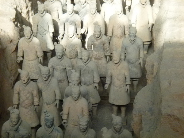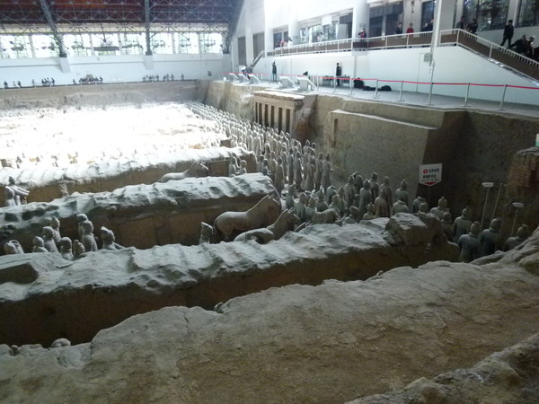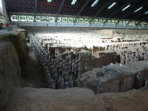 とうとう兵馬俑にお目にかかれました。写真では何度も見ていますが、やはり実物は違います。想像以上に精巧に作られており、それが体育館ほどの大きさの建物に一杯に埋まるほど並んでいます。これまでも数多くの世界遺産を見てきましたが、これは別格です。これだけのものを作る労力を想像すると、当時の始皇帝の権力がどれほどのものだったか窺い知れます。