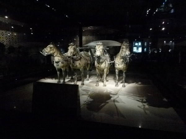 秦銅馬車陳列館では、1/2サイズの銅製馬車を見ることができました。ドラマで始皇帝が乗っていたものにそっくりだったので興奮しました。