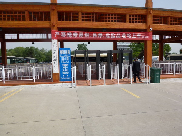 兵馬俑を見た後は、「秦始皇帝陵遺址公園」に向かいます。チケット売り場の前に公園までのシャトルバス乗り場があります。